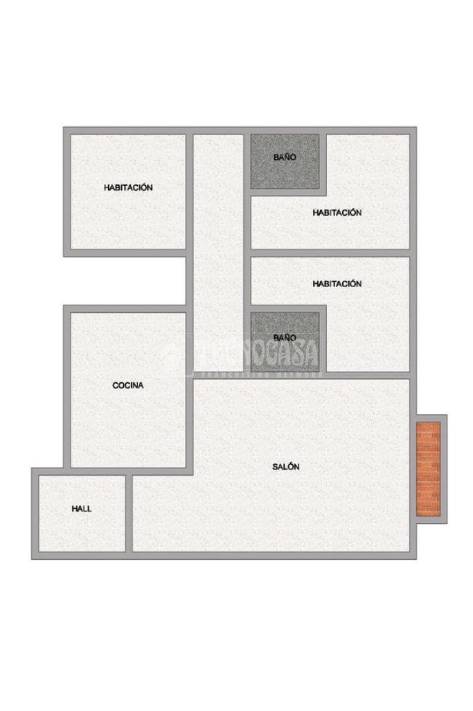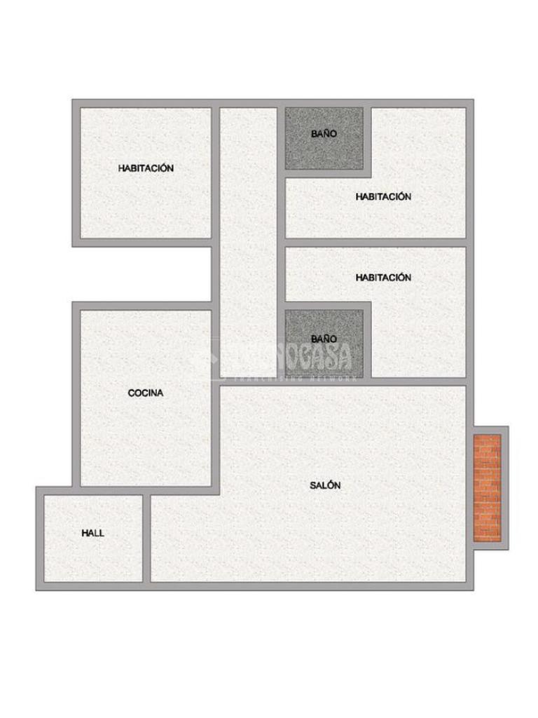 Se compone de tres habitaciones y dos baños completos, uno de ellos en suite dentro del dormitorio principal, aportando mayor comodidad e intimidad.